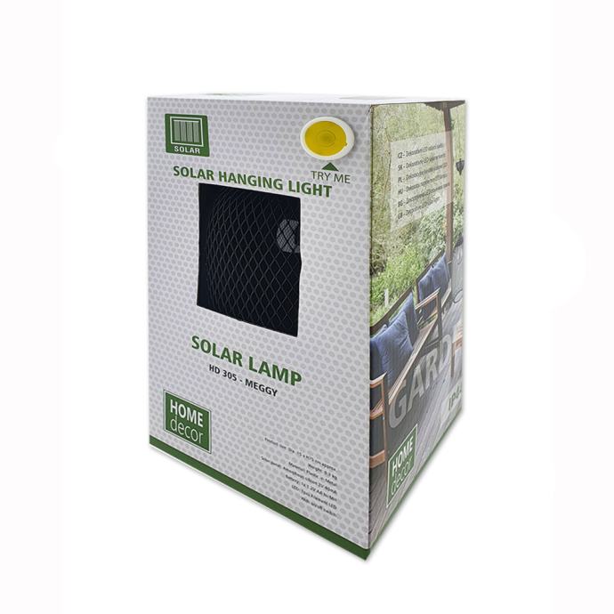 Viseća solarna vrtna lampa, idealno rješenje za osvjetljenje oko kuće, terase ili vrta. Solarni panel na svjetiljci upija sunčevu svjetlost tijekom dana, puni bateriju i oslobađa svjetlost noću. AUTO ON/OFF Odlučite kada ga želite koristiti jednostavnim pritiskom na prekidač za napajanje. Svjetlo se automatski isključuje tijekom dnevnih sati. Produžite svoje dane vani i uživajte u sjedenju nakon sumraka.