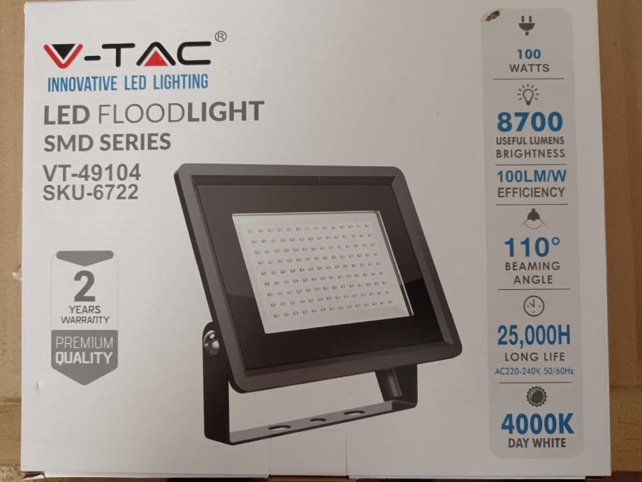 V-tac led reflektor, 100w, 8700l, 4000k