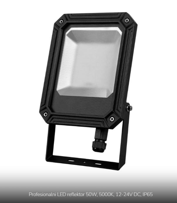 LED PROFESIONALNI reflektor 50W predviđen za napajanje 12V do 24V DC, za vanjsku upotrebu IP65 i veće mehaničke čvrstoće IK08.