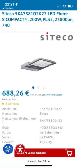 Prodajem više komada novih reflektora,zadnja slika cijena jednog reflektora u Njemačkoj,kod nas su još skuplji.Idealno za osvijetljenje velike hale,igrališta….