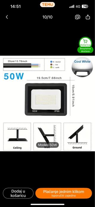 Prodajem LED reflektore snage 50W, idealan za vanjsku i unutarnju upotrebu.