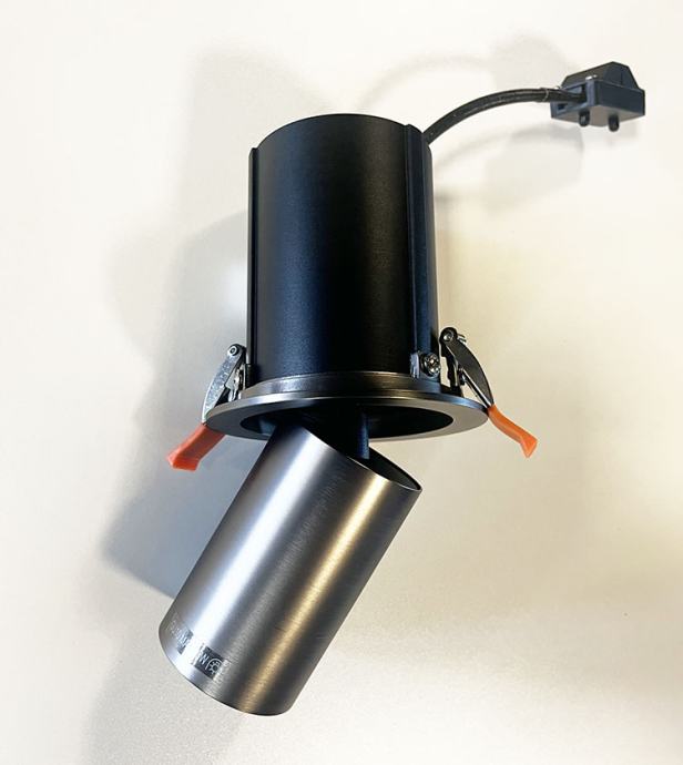 Moderna ugradbena rasvjeta u obliku reflektora sa zglobom koji se može uvlačiti / izvlačiti te usmjeravati svjetlo prema potrebi.