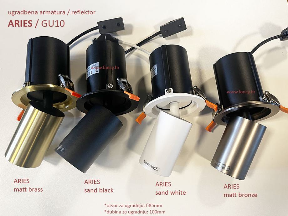 Predviđeno za MR16 GU10 LED žarulje kao izvor svjetla koji je moguće mijenjati, napajanje 230V, a predviđeno je za ugradnju u spušteni strop.