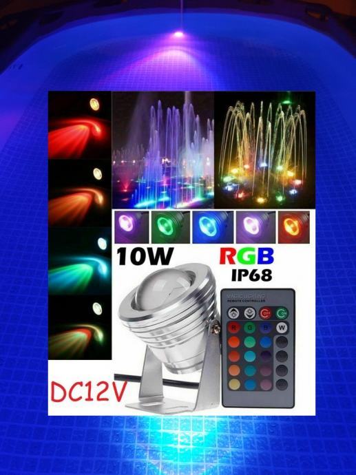RGB LED podvodna i nadvodna rasvjeta IP68 DC12V 10W+Daljinski 24tipke