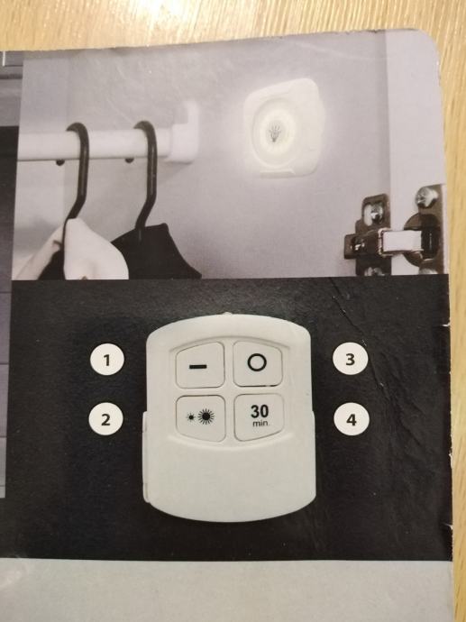 Može se uključiti , isključiti, potamniti i posvjetliti putem daljinskog upravljača koji ima priložen i nosač za postavljanje