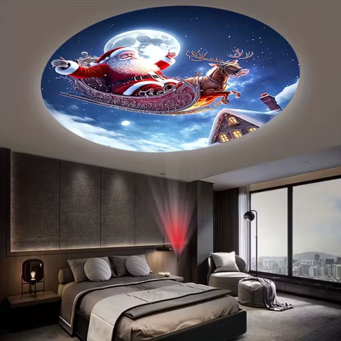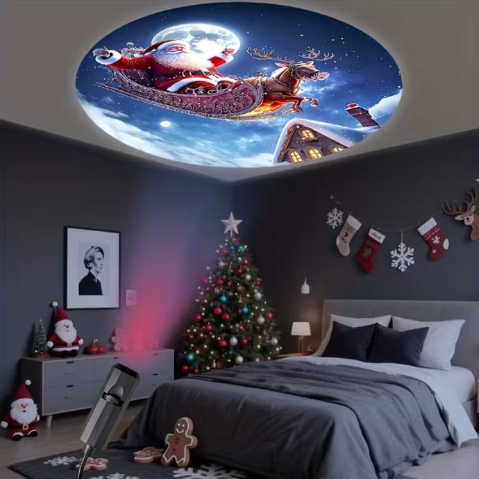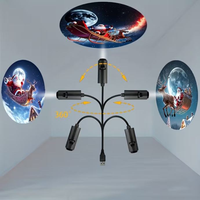 USB projektor s božićnim elementima, uzorkom snjegovića i sobova u saonicama Djeda Mraza, 360° okretno usmjereno projektorsko svjetlo za unutarnju blagdansku pozadinu, zabavu, vjenčanje, stvaranje atmosfere - božićno svjetlo za dekoraciju Noći vještica, sezonski dekor