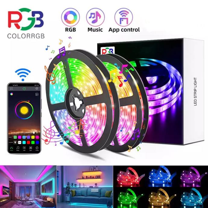 - LED traka može se kontrolirati pomoću aplikacije na mobitelu (Bluetooth) ili putem daljinskog upravljača