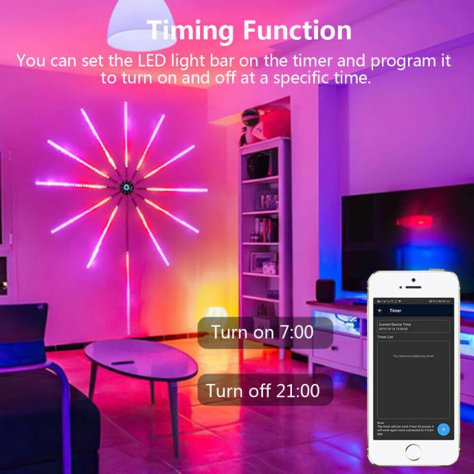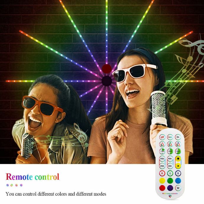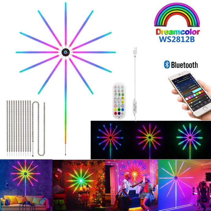 11 kratkih LED traka i 1 duga LED traka oponašaju učinak vatrometa koji je lansiran i prsnuo u nebo. Posebno je zapanjujuće kada je više svjetala poredano na zidu.