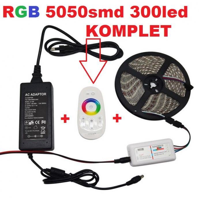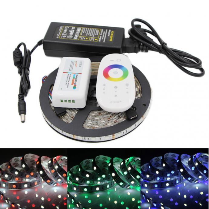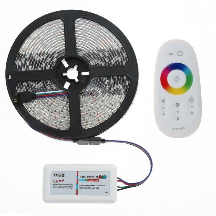 RGB LED traka 5m 5050smd +RF daljinski 18A na dodir+NAPAJANJE KOMPLET