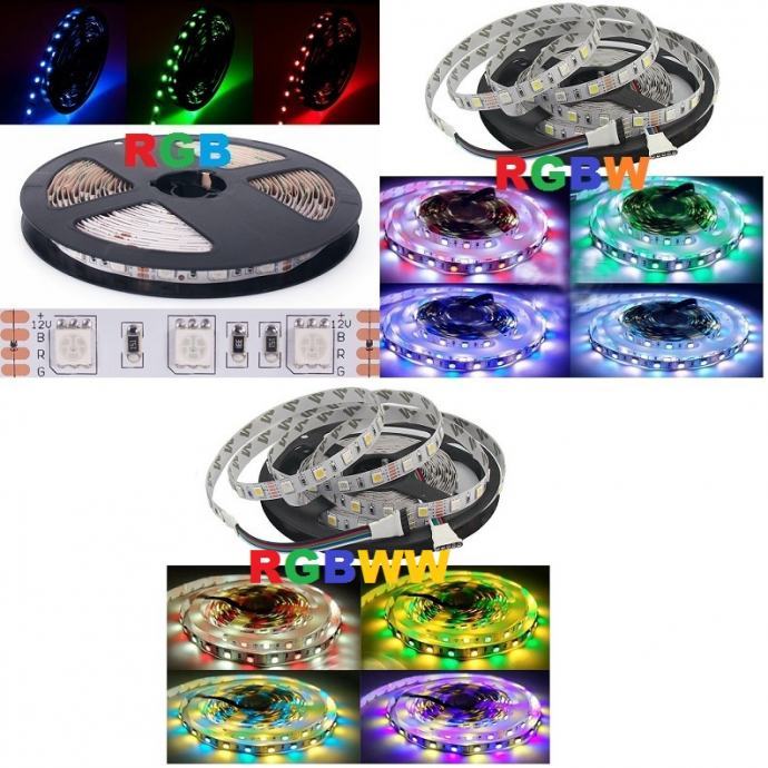 RGBW (RGB + hladnao bijela) 5metara 5050 300smd - 23€(IP20) ILI IP65 (26€)