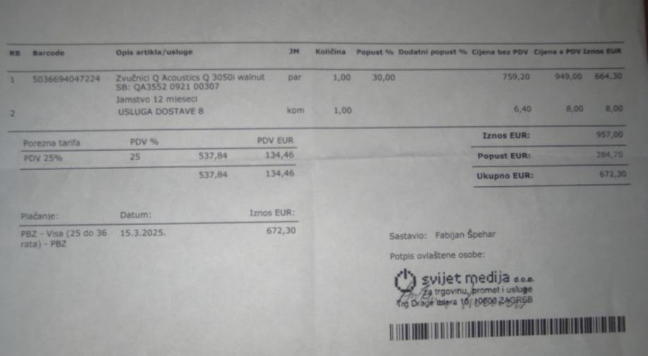 ukupno sve plaćeno preko 2400€.