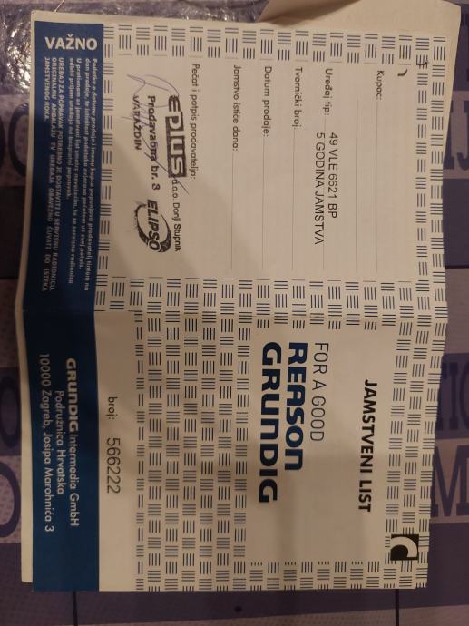 Razlog prodaje - kupljen je novi i veći TV. (zamjena ne dolazi u obzir)