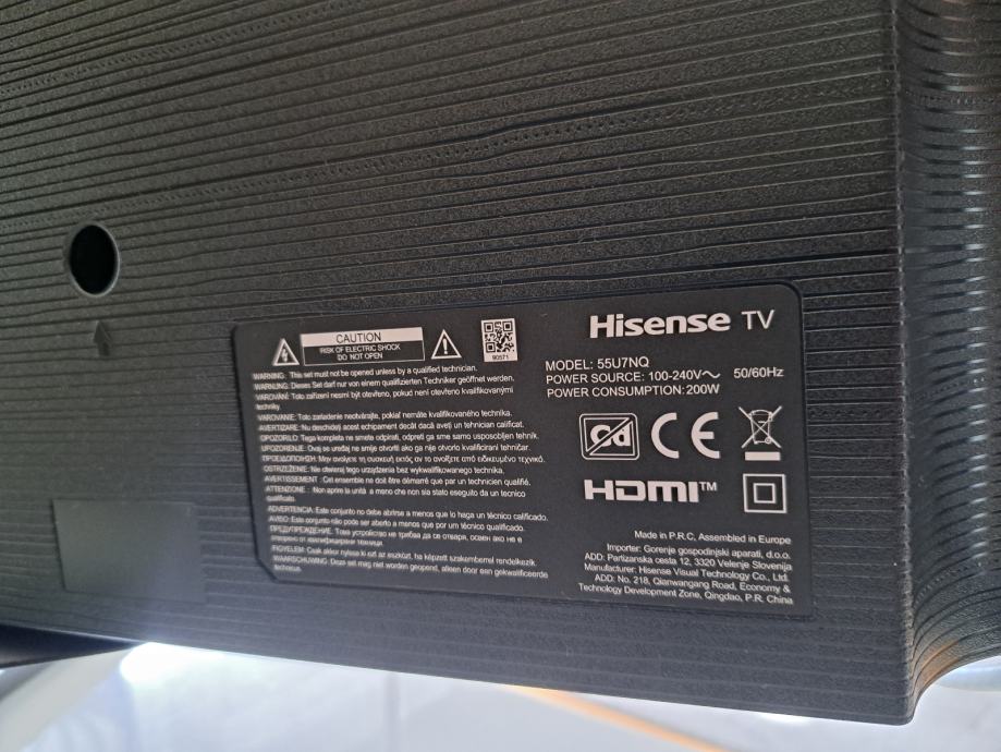 Na prodaju Hisense 55U7NQ, Mini-LED QLED Smart TV veličine 55" (139 cm). Kupljen nedavno, 11.02.2025. u Elipsu, uz račun i važeću 2-godišnju garanciju.