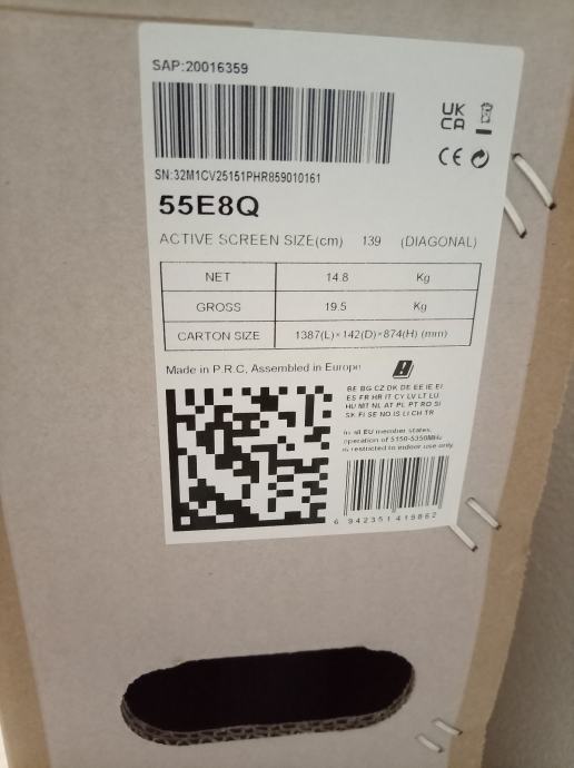 Hisense 55E8Q(140cm dijagonala) mini led ,nov,zapakiran,nikad korišten+5 god garancije