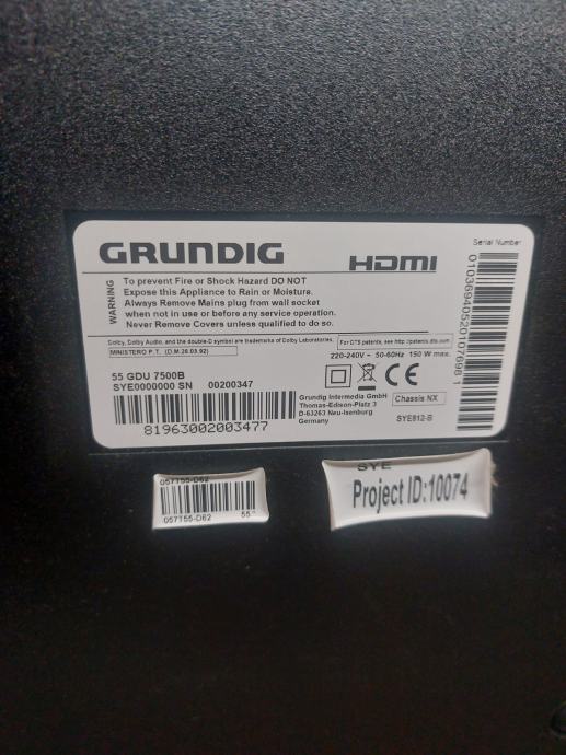 LED TV GRUNDIG 55GDU7500B, 55" (140cm), Ultra HD (4K), Smart TV, Wi-Fi, DVB-T2/C/S2/HEVC (H.265)