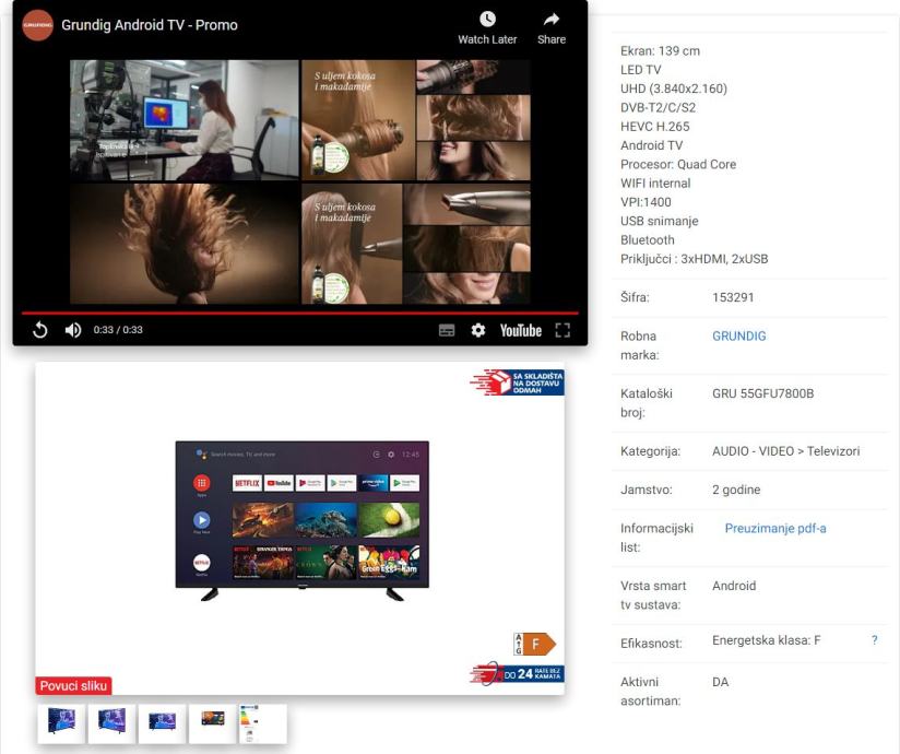 Prodajem LED TV GRUNDIG 55GFU7800B, 139cm, ultra hd(4K), android tv