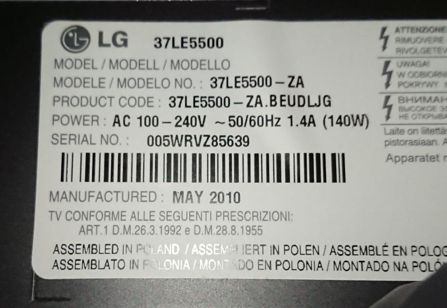 Dobar LG TV dijagonale 37'' (94 cm), dolazi sa zidnim nosačem umjesto postolja.