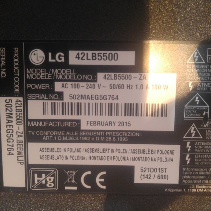 LED TV LG 42LB5500 Matična, napajanje, LED poz, osvj,