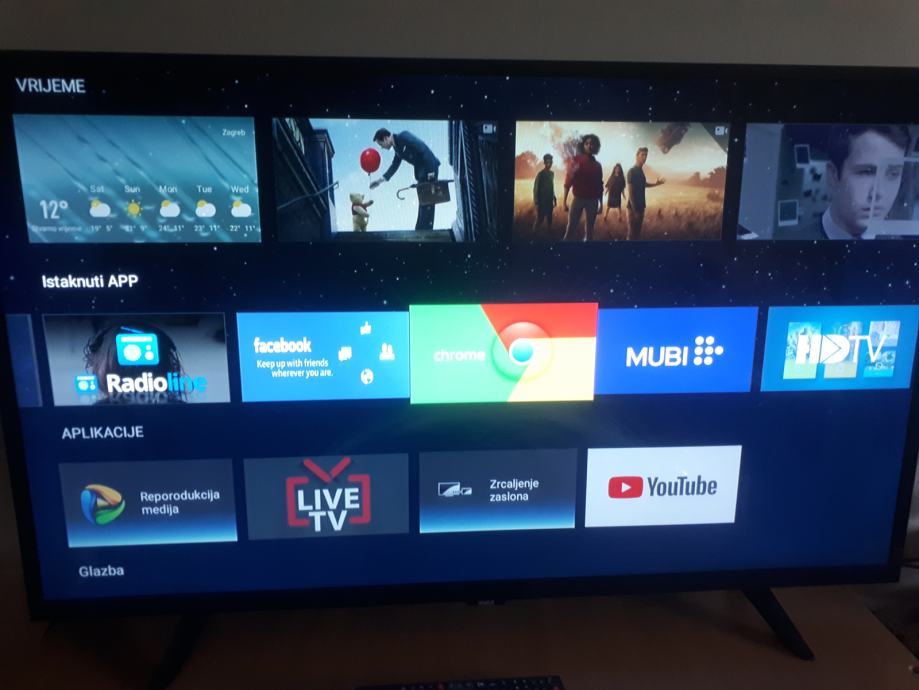 a sve to na velikom ekranu. Televizor ima operativni sustav Android za pohranu aplikacija, digitalni T2,