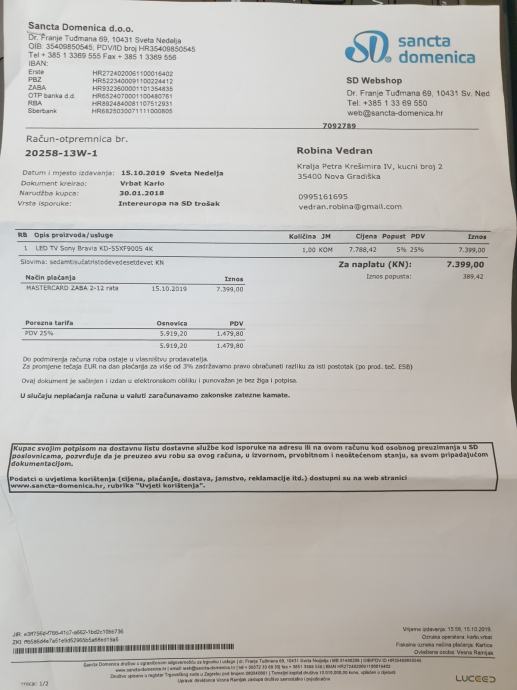 Prodajem LED TV SONY BRAVIA KD - 55XF9005 4K 8 (RAZBIJEN EKRAN) KUPLJEN 2019.