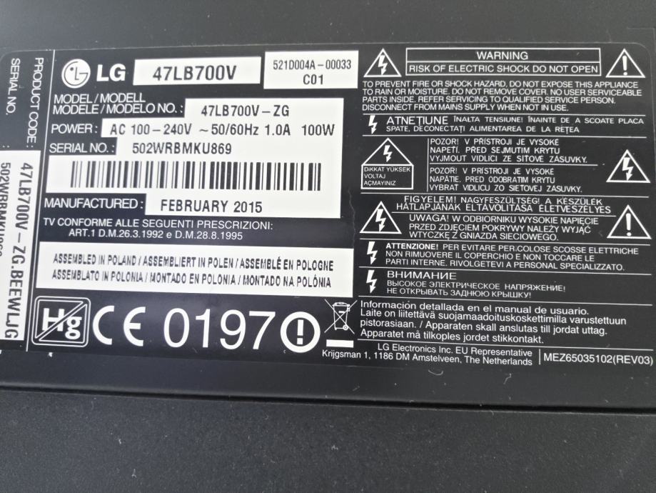 Prodajem rabljen, vrlo kvalitetan LG 47LB6700V 47" 1920 x 1080 1080p LED Smart TV, ispravan, sa odličnom slikom. Jako malo korišten, bez ikakvog oštećenja i tragova korištenja. Prodajem ga sa strujnim kablom, postoljem i original daljinskim upravljačem, ima mogućnost postavljanja na zid. Ima ugrađen DVB-T2 ali ne podržava HEVC kodeks tako da je potrebno kupiti DVB-T2 tuner
