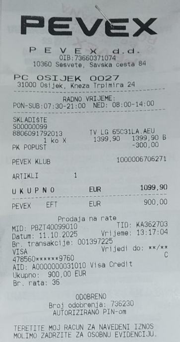 Plaćen 1100€, prodajem za 650€, Tv mi je malo velik za moju udaljenost gledanja, uzeo bih 55".Uređaj ima 4 HDMI priključka, 2 USB priključka te ugrađeni Wi-Fi. Ovo je Smart TV s HDR tehnologijom koji pruža iznimnu kvalitetu slike.