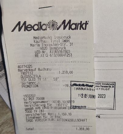 Garancija: 20.6.2028 - 5 godina MediaMarkt - Austrija