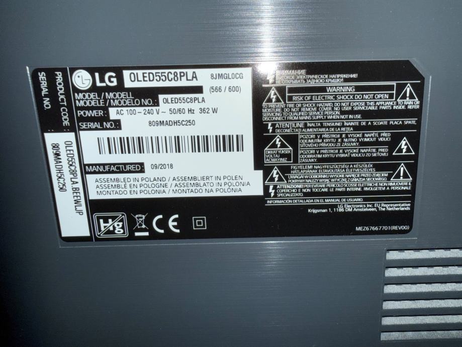 OLED televizor s 4K Ultra HD rezolucijom dijagonale 139 cm (55") i aktivnim HDR-om s Dolby Vision. Perfect Color, bez kip-slike, Perfect Black, webOS Smart TV, HbbTV, tuner DVB-T/T2 (HEVC)/S2/C, web preglednik, Wi-Fi, DLNA, Miracast, Bluetooth, Audio 2.2k 40 W, Dolby Atmos, 4× HDMI 2.0, 3× USB, pogodan daljinski upravljač, mogućnost snimanja na USB.