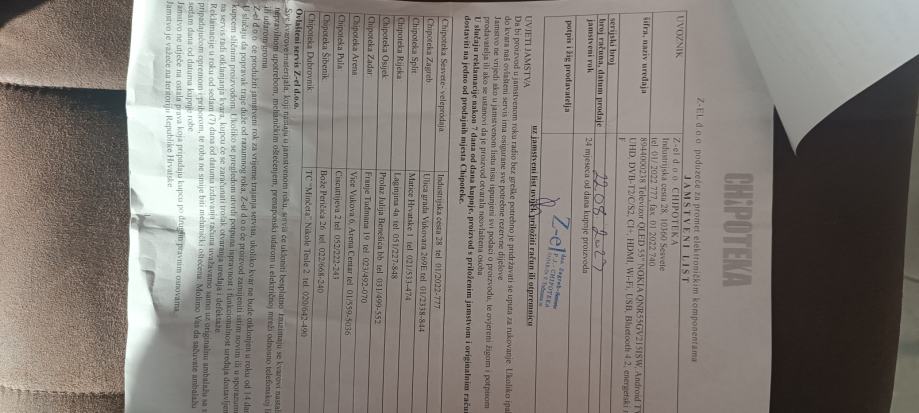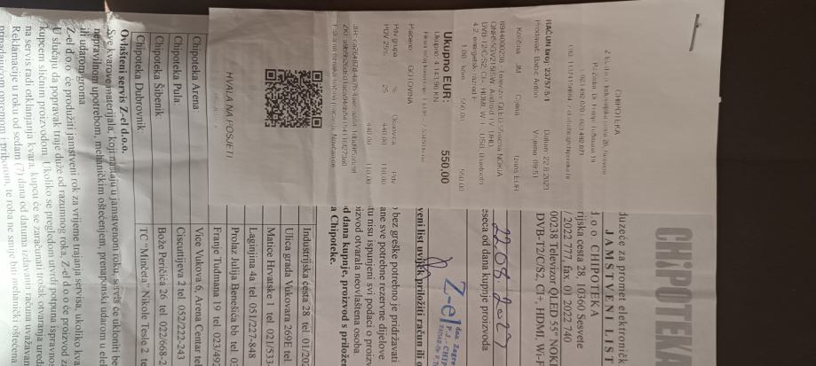 Prodaje se prilazem racun tv je kosatao 550€ kupljen prije 2 ipo godine,otisla maticna u servisu Alta u zadru cijena popravka 120€.