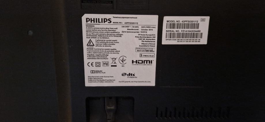 Prodajem Philips 43PFS5301/12 kupljen 2016 godine. U odlicnom stanju manje koristen.