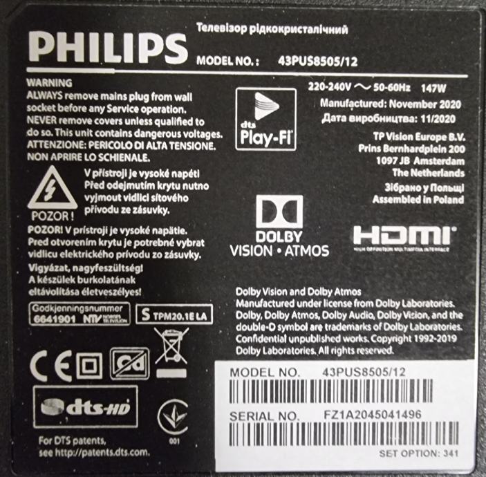 Garancija televizije je 5 godina,i vrijedi do 20.11.2025 godine.