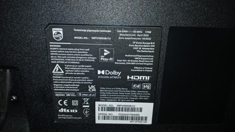 Philips led tv velicine 58 incha (146 cm) prodajem za 50 eura. Tv je neispravan jer se umjesto slike pojavljuju linije na ekranu. Napajanje i led rasvjeta su ispravni, a sto je neispravno ne znam. Uz tv dolazi originalni daljinski upravljac. Tv je kupljen krajem 2022. godine i nije puno koristen. Ekran nije ostecen. Izvana je u dobrom stanju. 097 759 5554