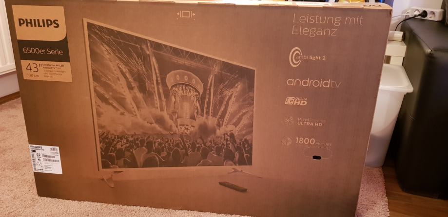Prodajem tv Philips 43PUS6501/12... Smart Android Led TV... daljinski sa tipkovnicom... Dijagonala 109cm... Kao novo, garancija do 10.mj.2019. Prodajem zbog kupnje većeg tv-a... Tv je u savršenom stanju, Android tv, ultraHD 4K, 1800 PPI, ambilight sa dvije bočne strane...može na stalak ili na zid...Sve originalno zapakirano u ambalažu... račun, garancija...