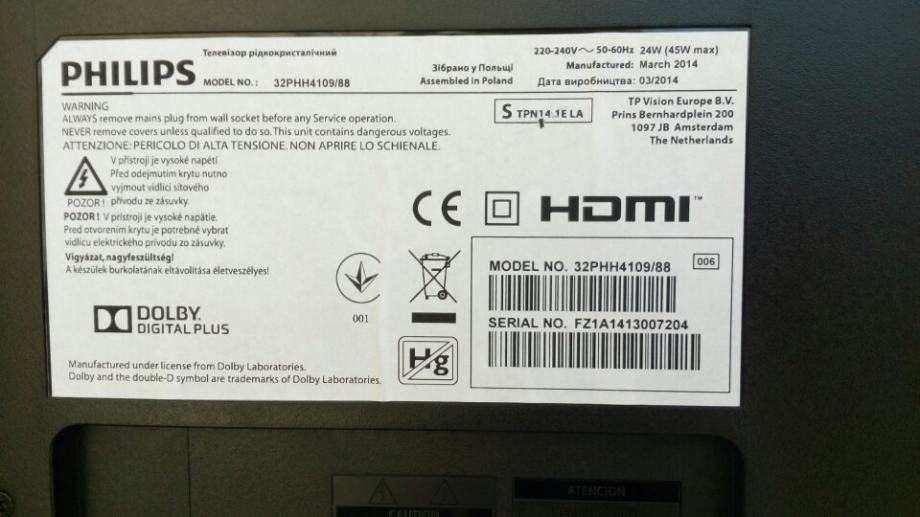Philips televizor 32PHH4109/88, 32", LED, HD ready-razbijen ekran