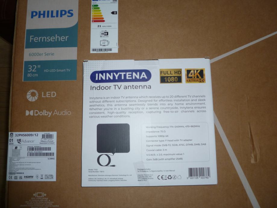 Prodajem PHILIPS TV HD-LED- SMART TV, dijagonala 80cm NOVO ne uporabljeno, svi ostali podaci vidljivi na slikama. Uz televizor ide i nova antena prikazana na slikama, svi papiri i račun sa datumom kupnje i ovjerenim jamstvom.