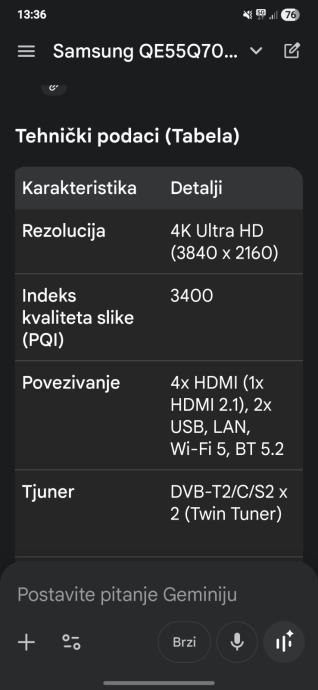 Prodajem Samsung tv Qe55q70aa u stanju 10/10, o cijeni se možemo dogovoriti još.