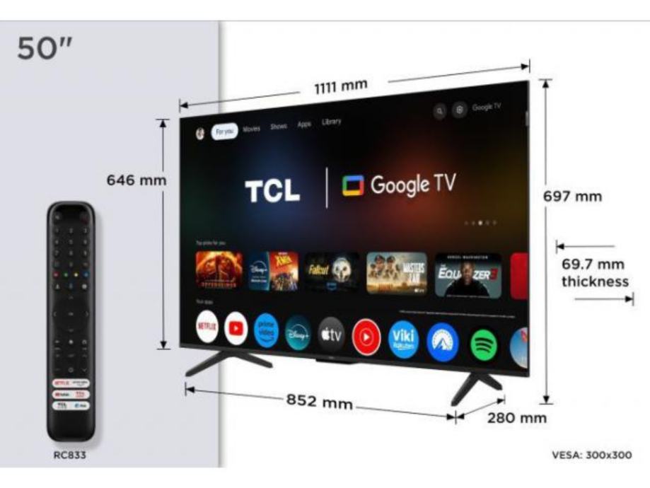 QLED TV TCL 50P7K, 50" (127cm), Ultra HD (4K), HDR Dolby Vision, Dolby Atmos, HDMI 2.1, Google/Android TV,.glasovno upravljanje.,