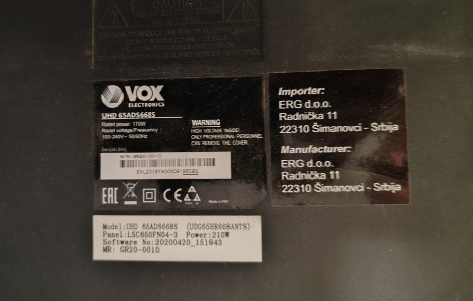 Razbijeni VOX led tv 65 inča