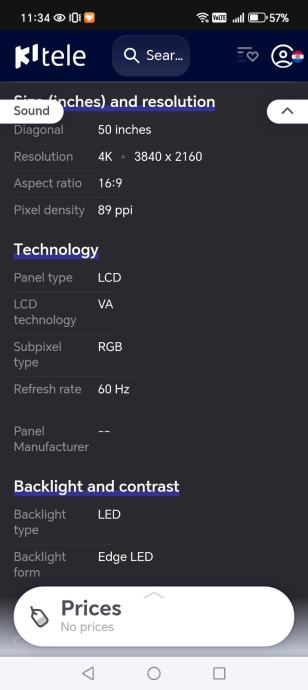 Specifikacije: 4K/Smart | 50" | 127cm | Form factor 16:9 | Resolution 3840x2160 | Dynamic contrast (DCR) Mega Contrast | 3xHDMI | 2xUSB 2.0 | 1xComponent video | 1xComposite video | 1xOptical S/PDIF | 1xRJ45 | 2xRF-In | 1xCI Slot | Speakers | Speaker Output 20W Watts | Wireless LAN | Bluetooth | Colour Charcoal Black