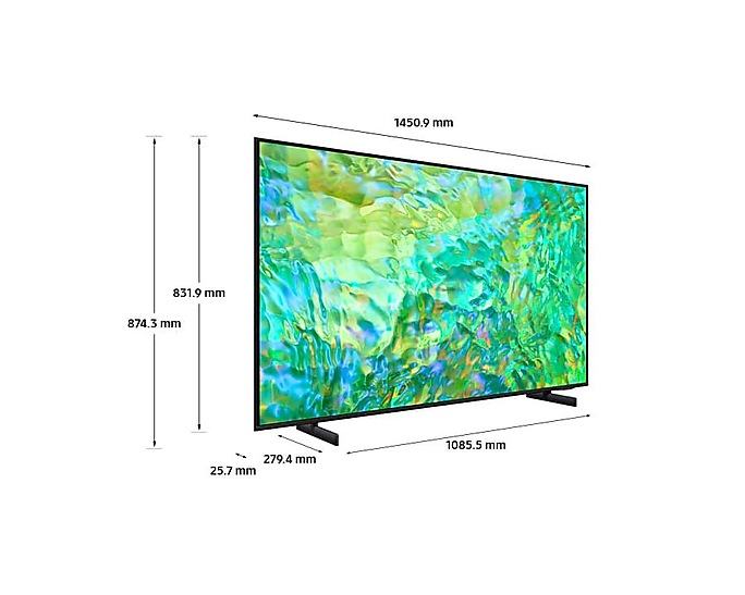 Long description Samsung Series 8 CU8072 65. Display diagonal: 165.1 cm (65"), Display resolution: 3840 x 2160 pixels, HD type: 4K Ultra HD, Display technology: LED, Screen shape: Flat. Smart TV. Native aspect ratio: 16:9. Digital signal format system: DVB-C, DVB-S2, DVB-T2. Wi-Fi, Ethernet LAN. Product colour: Black