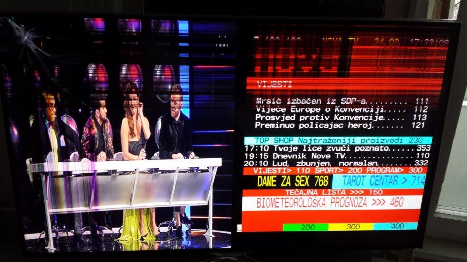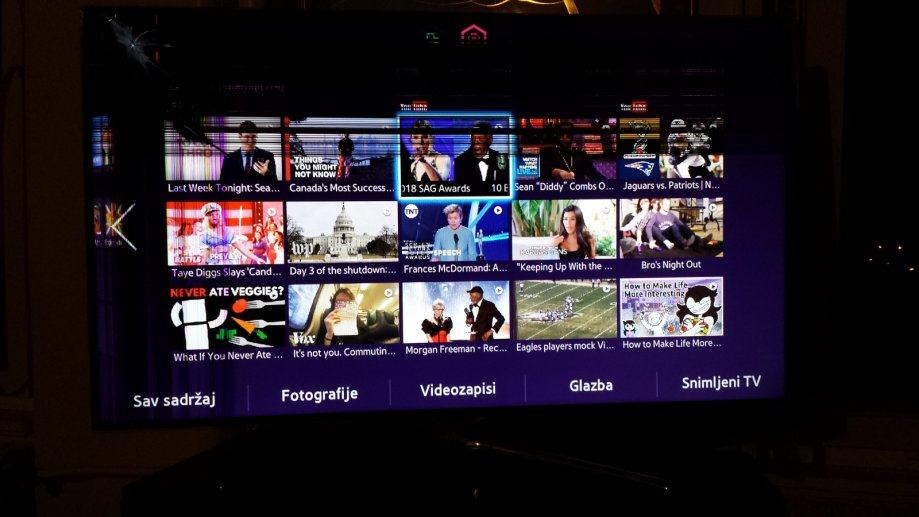 Samsungov tv 102 dijagonale,ostecen od udarca pikule,pogodan za dijelove,sve ispravno al nazalost je slika takva,smart hub,wifi,prepoznavanje govora,3D,dvoje novih nekoristenih naocala,daljinski,usb cita sve formate,usb snimanje,hdmi,satelitski tuner integriran,tv prima kartice za dekodiranje kanala.....