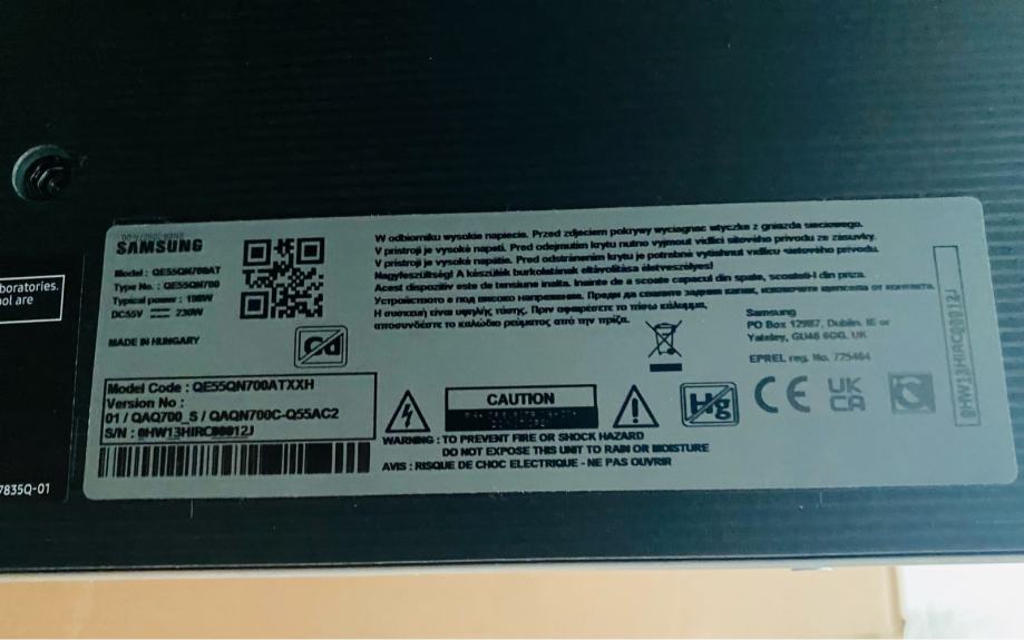 Samsung Neo QLED televizor model QE55QN700A 8K, kupljen 2022. godine u Sancta Domenici.