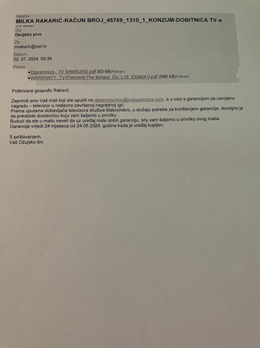 Prodajem ispod opisani televizor koji sam dobio na nagradnoj igri Ožujskog piva u Konzumu (vidljivo na predzadnjim slikama) i koji je kao što se može vidjeti na slikama potpuno nov i ne otvoren te u svom tvorničkom pakiranju kako je meni dostavljen, uz televizor dolazi garancija/jamstvo u trajanju od 24 mjeseca (zadnje tri slike), tako da samo ozbiljne ponude dolaze u obzir, isključivo prodaja za gotovinu te bez zamjena i ostalih dogovora. Zvati na mob 098/634-603 ili mail: drakaric@net.hr