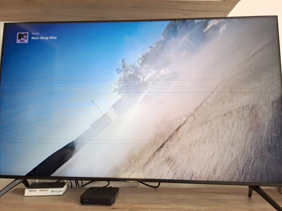 Oštećen display. TV radi i inače potpuno ispravan, no na display-u se vidi nekoliko crtica.