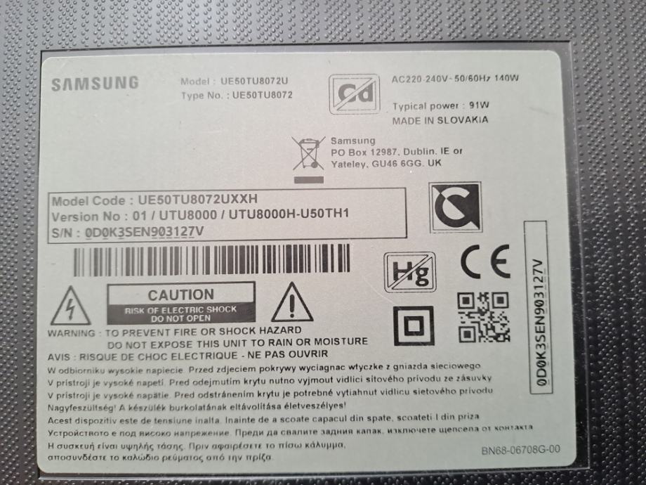Samsung 50" TV neispravan Smart LED za DIJELOVE UE50TU8072 U
