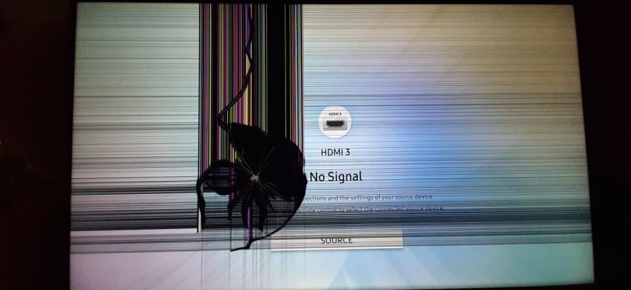 Dobio udarac u ekran, slika je crna na mjestu udarca. Prodajem za dijelove ili za popravak, sve ostalo na televizoru radi. Koristen 6 mjeseci.