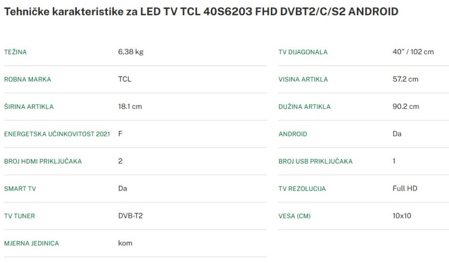 -Mreža: Wi-Fi, Bluetooth, DLNA 1.5, Smart Android 15 TV, Ethernet