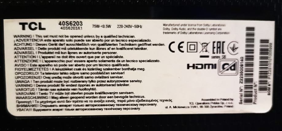 TCL 40S6203 40" (102 cm) Full HD LED TV - HDR10