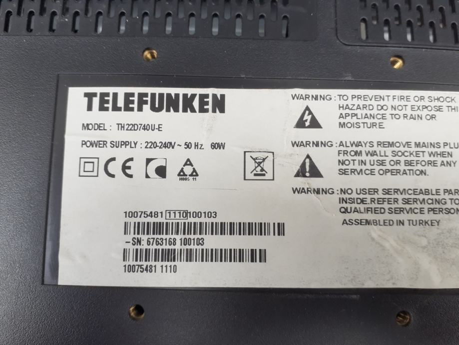TELEFUNKEN TH 22D740 U-E (55cm) ispravna, bez daljinskog, za instalaciju na zid.