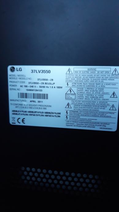 TV led LG bez daljinskog prodajem, tip 37LV3550, dijagonala 94 cm, poluispravan. Mogu se hvatati programi Slovenske zemaljske TV dok hrvatski zemaljski programi ne mogu bez receivera Desni dio ekrana je malo tamniji . Cijena nije fixna . U prilogu vidi fotografije. Poljanice Gornja Dubrava Zagreb